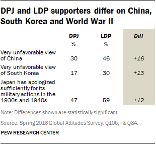 Notably, those who identify with the LDP are also more critical of South Korea than are backers of the DPJ.