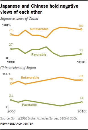The Chinese and Japanese have held fairly strong and often negative stereotypes of each other for some time. And in some instances these views have worsened over the past decade.