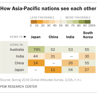 Sino-Japanese antipathy can also be seen in a regional context. Influenced by history, economic ties and current events, Asian publics’ views of each other vary widely.